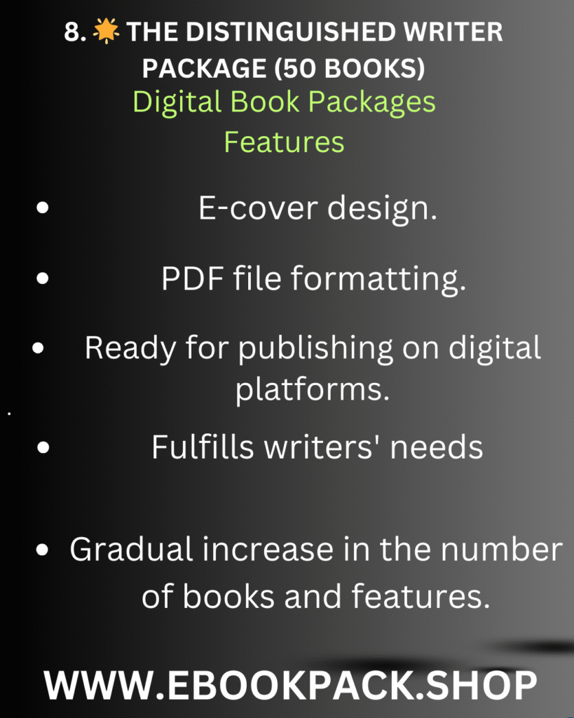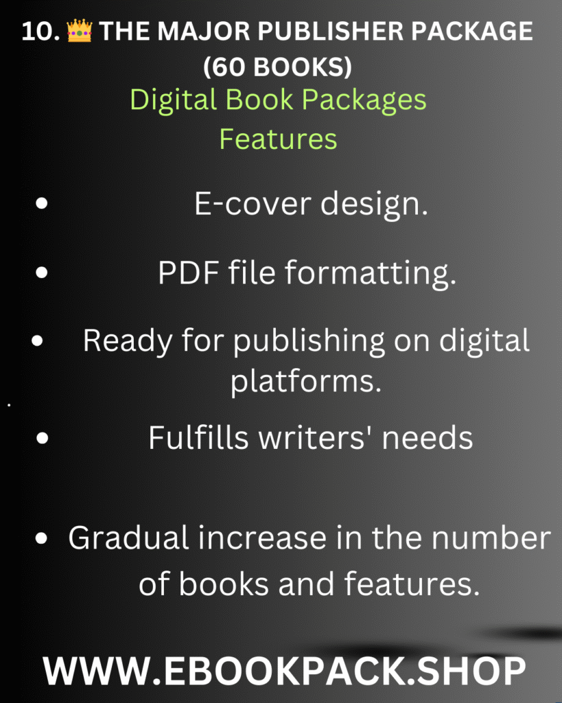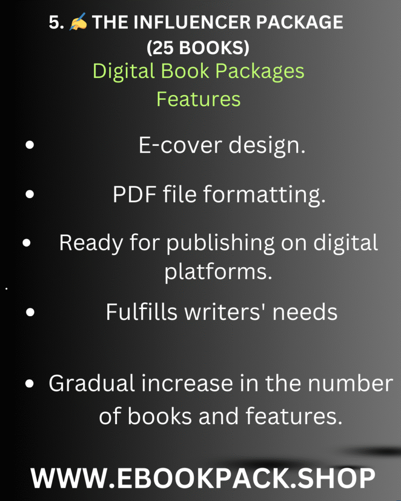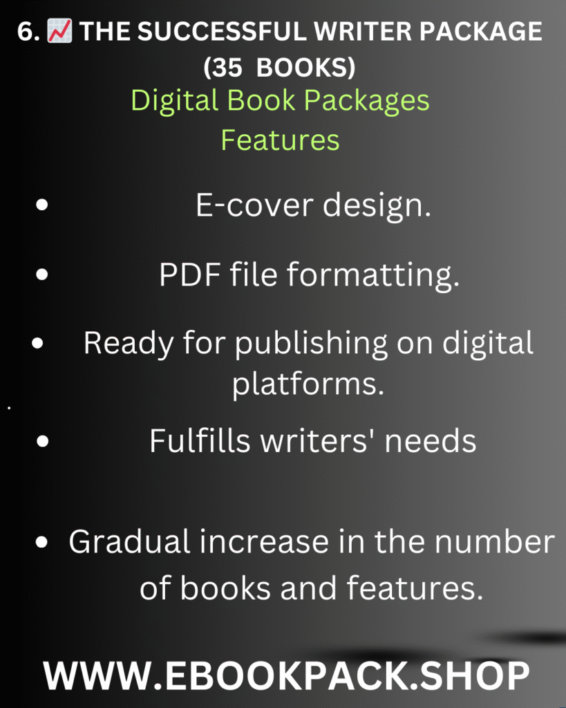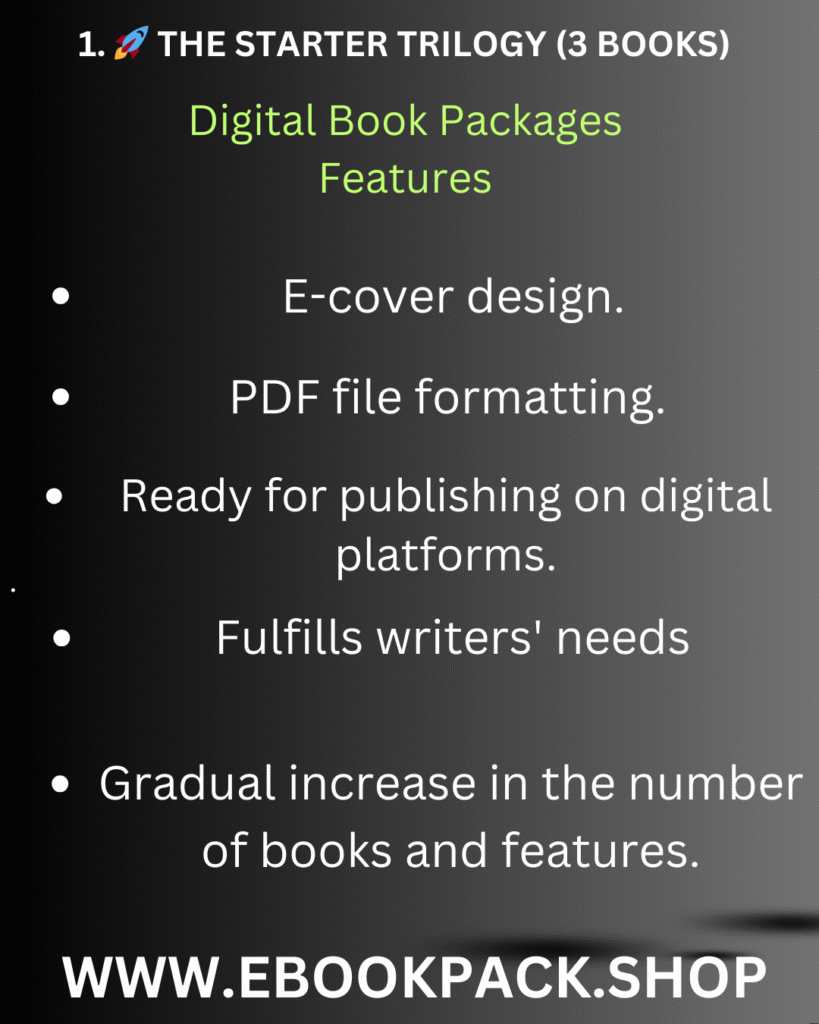 We offer comprehensive digital content solutions.Our expert team transforms your ideas into high-quality, engaging books, meticulously designed to meet your specific needs and help you effectively reach your audience and achieve success in your personal and professional projects.